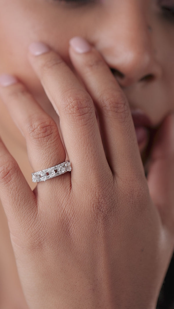 Perfect as a statement band, anniversary ring, or stacking piece, it arrives in a premium jewelry box and can be customized to suit your style.