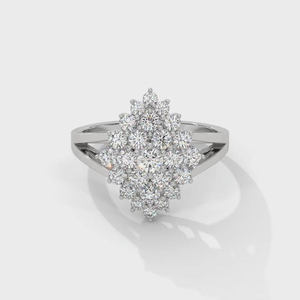 Radiating brilliance from every angle, this stunning 1.07ct round lab-grown diamond ring features a captivating cluster design that creates the illusion of a larger, statement centerpiece. Multiple round-cut CVD lab-grown diamonds are intricately set to form a dazzling floral-inspired silhouette, delivering exceptional sparkle and depth.