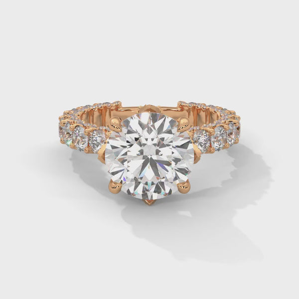 6.89 CT Round Lab-Grown Diamond Solitaire Ring with Pave Band