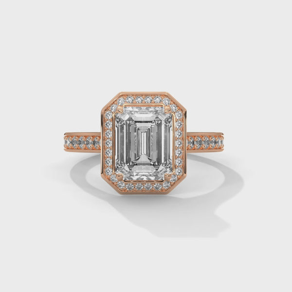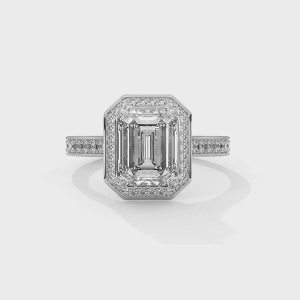 • Design: Emerald Halo Ring with Pavé Band