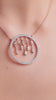 - Design: Circular pendant with dangling diamond drops and matching earrings