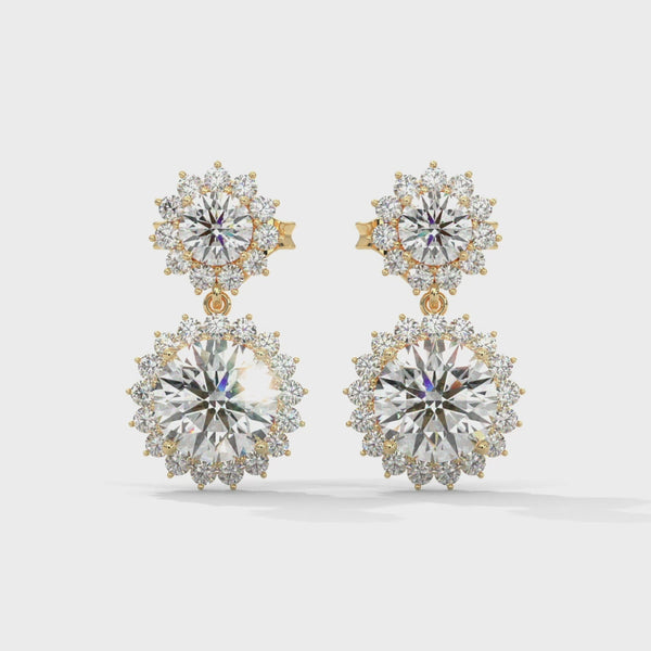 1.55 CT Round Halo Drop CVD Lab-Grown Diamond Earrings