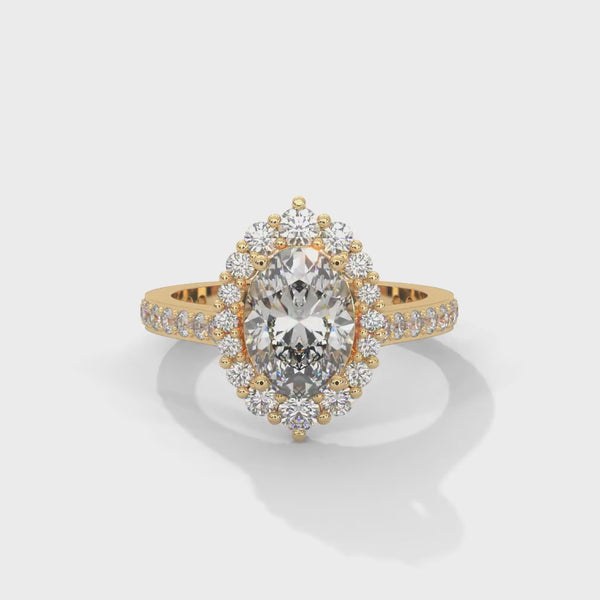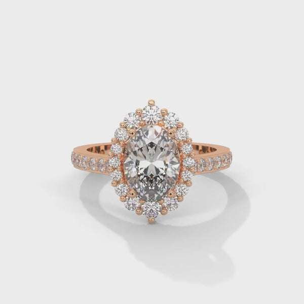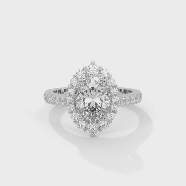 • Design: Oval Halo Engagement Ring with Pavé Band