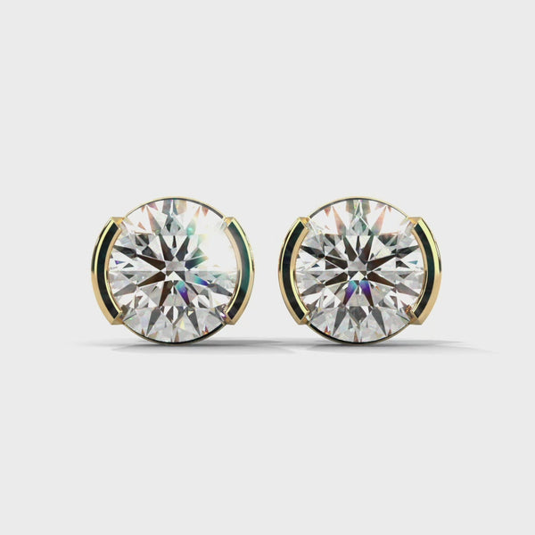 Sleek and contemporary, these refined stud earrings feature a total diamond weight of 2.60 carats, showcasing brilliant round-cut diamonds in a modern bezel-inspired setting. The smooth gold frame enhances the diamond’s brilliance while offering a clean, secure, and sophisticated look. Crafted with premium CVD lab-grown diamonds in exceptional DEF color and VVS–VS clarity, these earrings deliver remarkable sparkle with a minimalist aesthetic. Set in your choice of 10K, 14K, or 18K gold in yellow, white, or rose tones with a high-polish finish, they are designed for everyday luxury. Certified by IGI and SGL and presented in a premium box, they make a perfect blend of style, comfort, and elegance.
