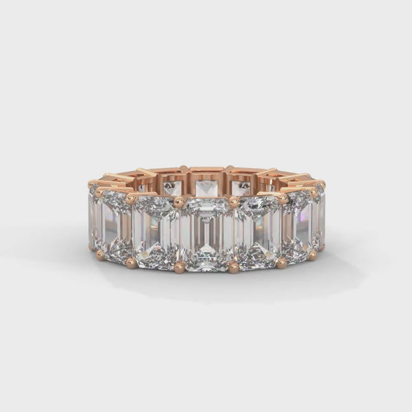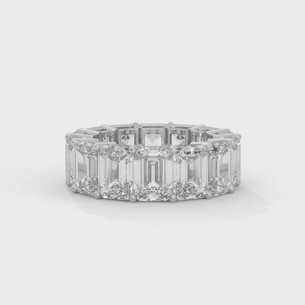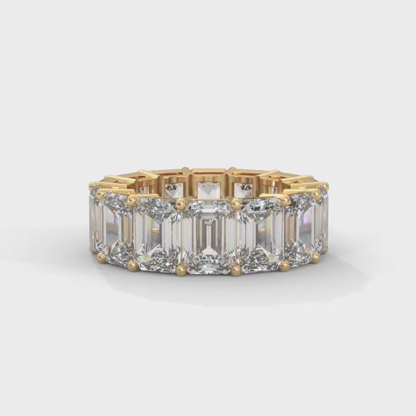 Make a bold statement of timeless luxury with this breathtaking 14.00 carat emerald-cut eternity band, designed to radiate brilliance from every angle. Featuring a continuous row of perfectly matched emerald-cut CVD lab-grown diamonds, this ring showcases exceptional craftsmanship and symmetry, creating an unbroken circle of elegance.